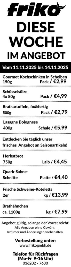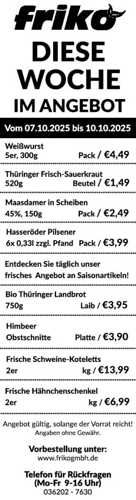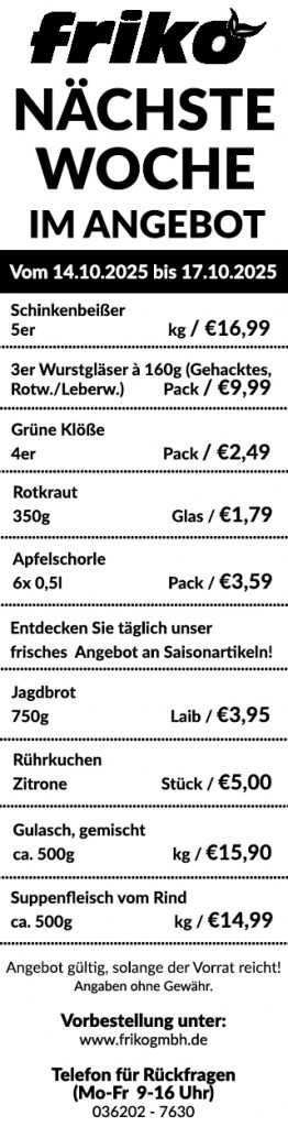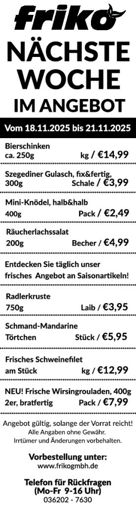 Die Friko GmbH aus Thörey, bei Erfurt, hat es sich zur Aufgabe gemacht, frische Lebensmittel aus der Region direkt vor der Haustür anzubieten. Unsere modern ausgestatteten Fahrzeuge bieten Ihnen alles, was Sie brauchen: Brot & Brötchen, Obst & Gemüse, Wurst & Fleisch, Molkereiprodukte, Eier, Kuchen & Gebäck. Diese Produkte bieten wir Ihnen mit unserer eigenen Handelsmarke Landkaufmann an.